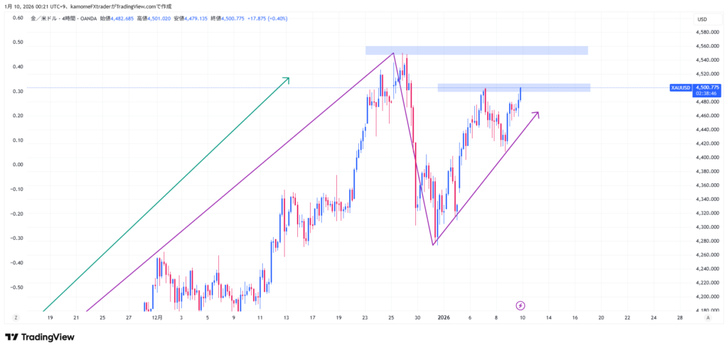 上位足的には4,550$を再チャレンジしそう。